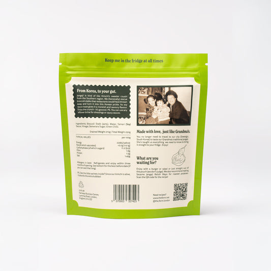 A sweet, umami-rich soy-sauce-pickle from Southern Korea. Made with broccoli stalks, this is kimchi’s mellow, moreish cousin.